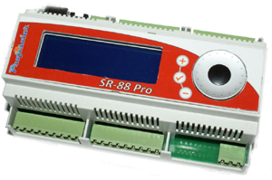 V současné době je jako součást našich solárních systémů dodávána řídící jednotka SR-88 Pro. Řídící jednotka je vyrobena v designu pro umístění do standardizovaného rozvaděče - na lištu DIN o rozměru 9 modulů. Naše jednotka je vybavena modro-bílým LCD 4x20 znaků se špičkovým kontrastem pro maximální čitelnost a ovládacím "jogdial" kolečkem. Vstupní a výstupní svorky jsou v násuvném provedení, které usnadňuje montáž.